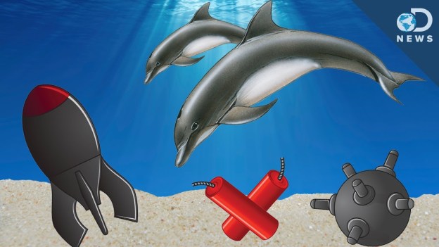 The U.S. NAVY MARINE MAMMAL PROGRAM: Since 1959, the U.S. Navy has trained dolphins and sea lions  to help guard against threats underwater….Dolphins naturally possess the most sophisticated sonar known to science. Mines and other potentially dangerous objects on the ocean floor that are difficult to detect with electronic sonar, especially in coastal shallows or cluttered harbors, are easily found by the dolphins. Both dolphins and sea lions have excellent low light vision and underwater directional hearing that allow them to detect and track undersea targets, even in dark or murky waters. They can also dive hundreds of feet below the surface, without risk of decompression sickness or “the bends” like human divers. Someday it may be possible to complete these missions with underwater drones, but for now technology is no match for the animals…Dolphins are trained to search for and mark the location of undersea mines that could threaten the safety of those on board military or civilian ships..