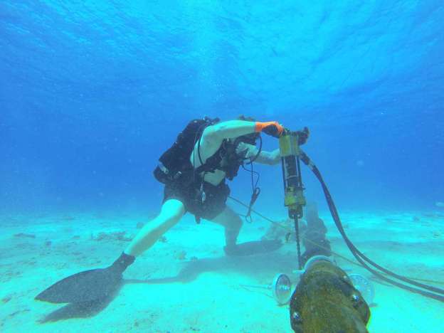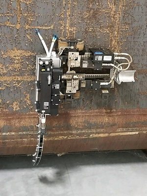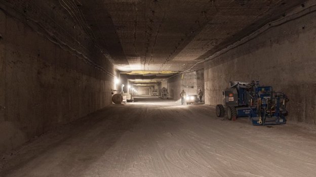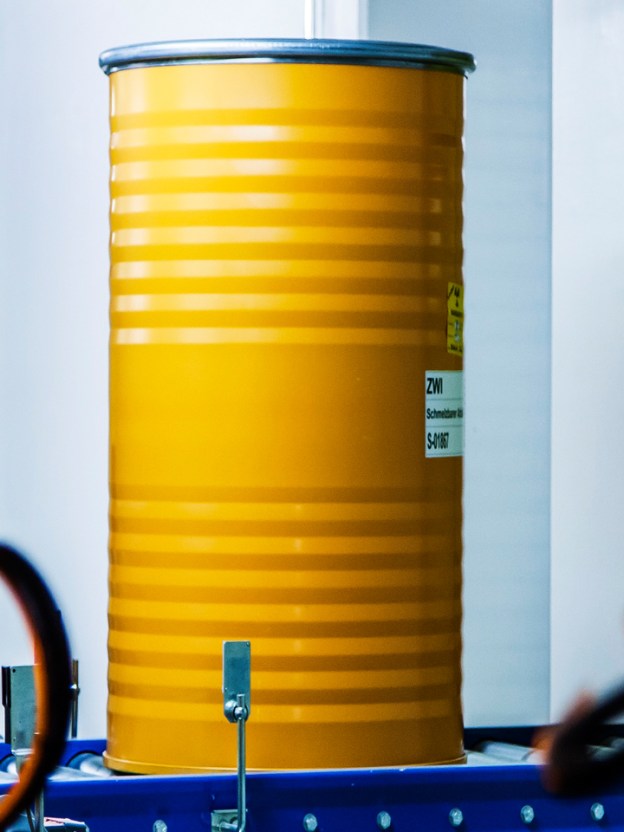 The first of six holes on the silo were cut (August 2017). To remove the waste, a crane will extend through the cut holes, and a grabber will drop down to scoop the waste up.It will be lifted out of the container and into a specially-designed metal box.