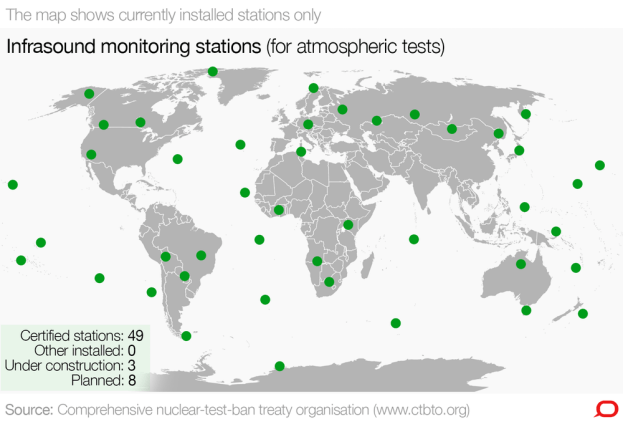 The CTBTO operates 170 seismic stations worldwide, 11 underwater hydroacoustic centres detecting sound waves in the oceans, 60 listening stations for atmospheric infrasound (low-frequency acoustic waves that can travel long distances) and 96 labs and radionuclide-sampling facilities. More sensors are being installed. Crucially, however, the optimal number for global coverage was recently reached. It is now impossible, reckons Dr Zerbo, to test even a small nuclear weapon in secret anywhere on Earth. And on top of that, the United States Air Force runs a detection network that includes satellites that can spot nuclear-weapons tests.
