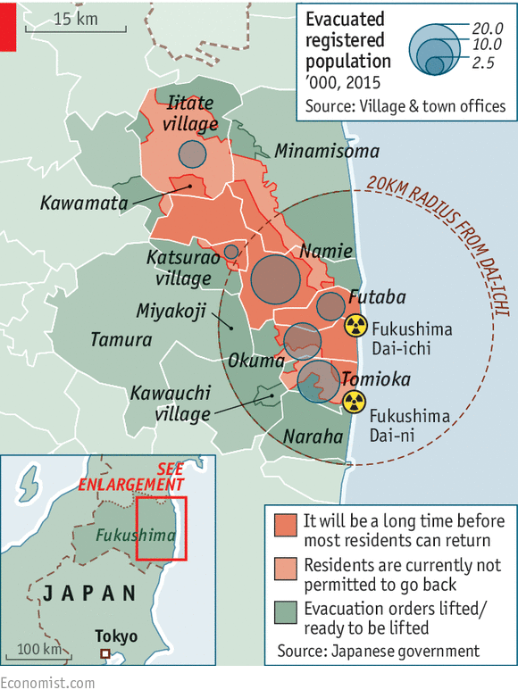 “We are still struggling with harmful rumors from the nuclear plant accident,” said Tadaaki Sawada, a spokesman for the federation of Fukushima fishery cooperatives. “How many more years will it continue?”…By several measures, the worst nuclear disaster since the Chernobyl accident in 1986 has been contained. Only around 2% of Fukushima prefecture, or state, is still a no-go area, down from 12% immediately after the disaster. An extensive decontamination process removed topsoil from areas around the plant. Still, thousands of people remain forced out of towns closest to the plant.