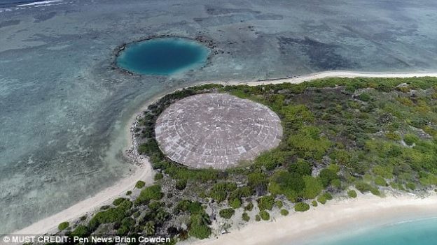 The 1954 explosion was part of nuclear tests conducted as the American military lurched into the nuclear age. From 1946 o 1958, 67 U.S. nuclear tests were conducted in the Marshall islands….From 1977 to 1980, loose waste and top soil debris scraped off from six different islands in the Enewetak Atoll was transported to Runit island and was mixed with concrete and buried in nuclear blast crater. 4,000 US servicemen were involved in the cleanup that took three years to complete. The waste-filled crater was finally entombed in concrete.  The Runit Dome, also called locally “The Tomb”, is a 46 cm (18 in) thick dome of concrete at sea level, encapsulating an estimated 73,000 m3 (95,000 cu yd) of radioactive debris, including some plutonium-239. …The structure, however, was never meant to last. Today, due to disrepair and rising sea tides, it is dangerously vulnerable. A strong storm could breach the dome, releasing the deadly legacy of America’s nuclear might….